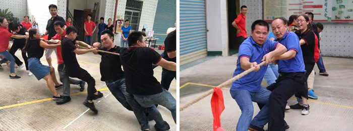 比賽如火如荼的進行著,由B組狼豪隊與C組鋼鐵隊隆重登場,在隊長們在開賽前的短短時間向隊員們強調拔河要領與技巧之后,隨著哨子吹響,狼豪隊勢如破竹,一根繩子一條心,擼起袖子加油拼!最終一路高歌殺入了決賽。